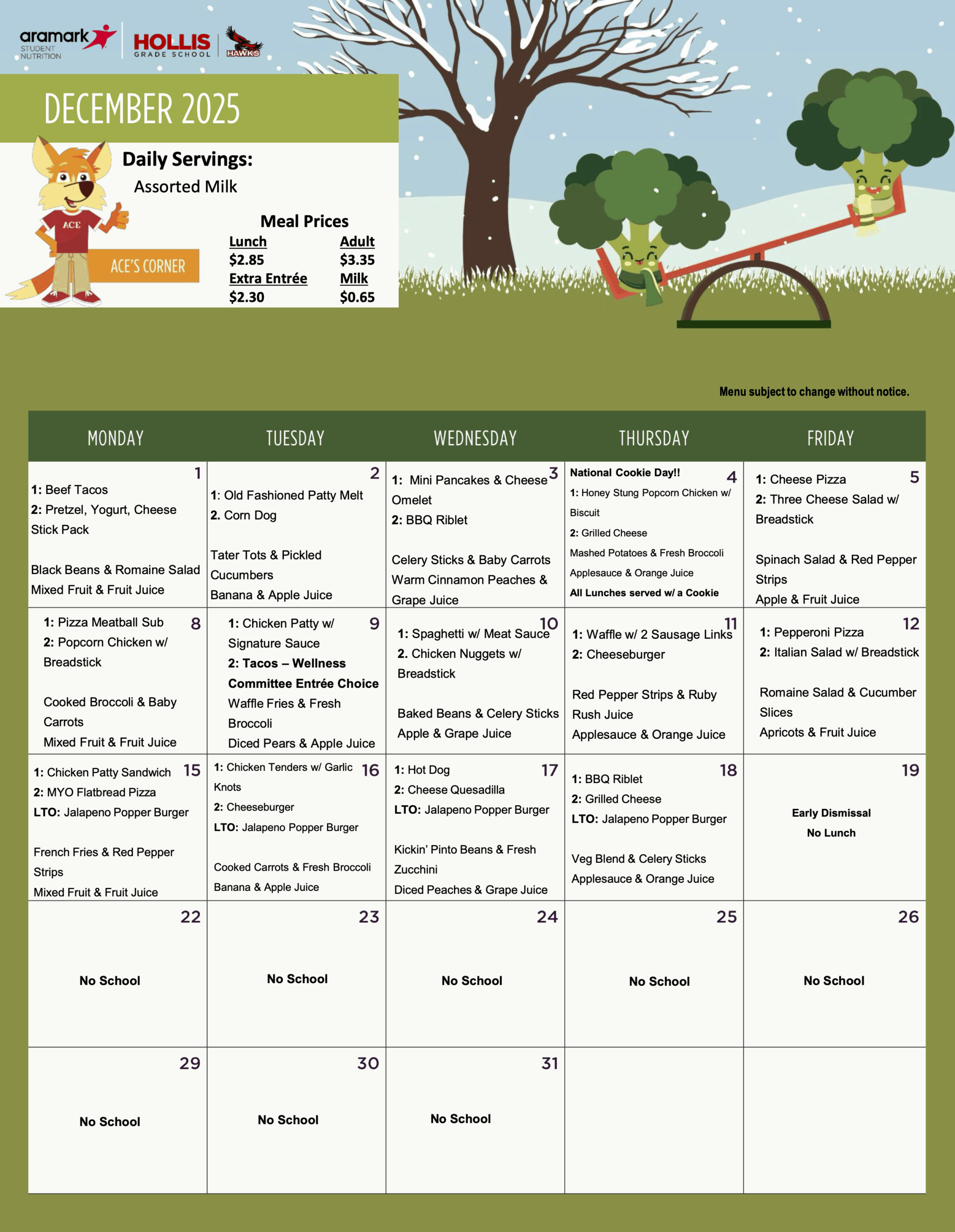 December Lunch Menu